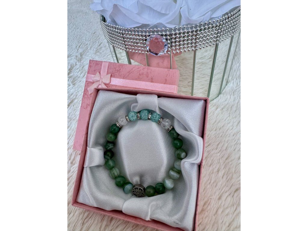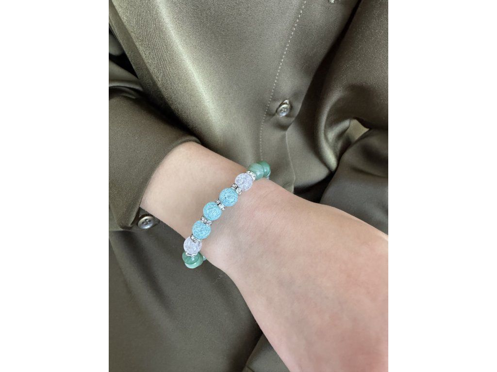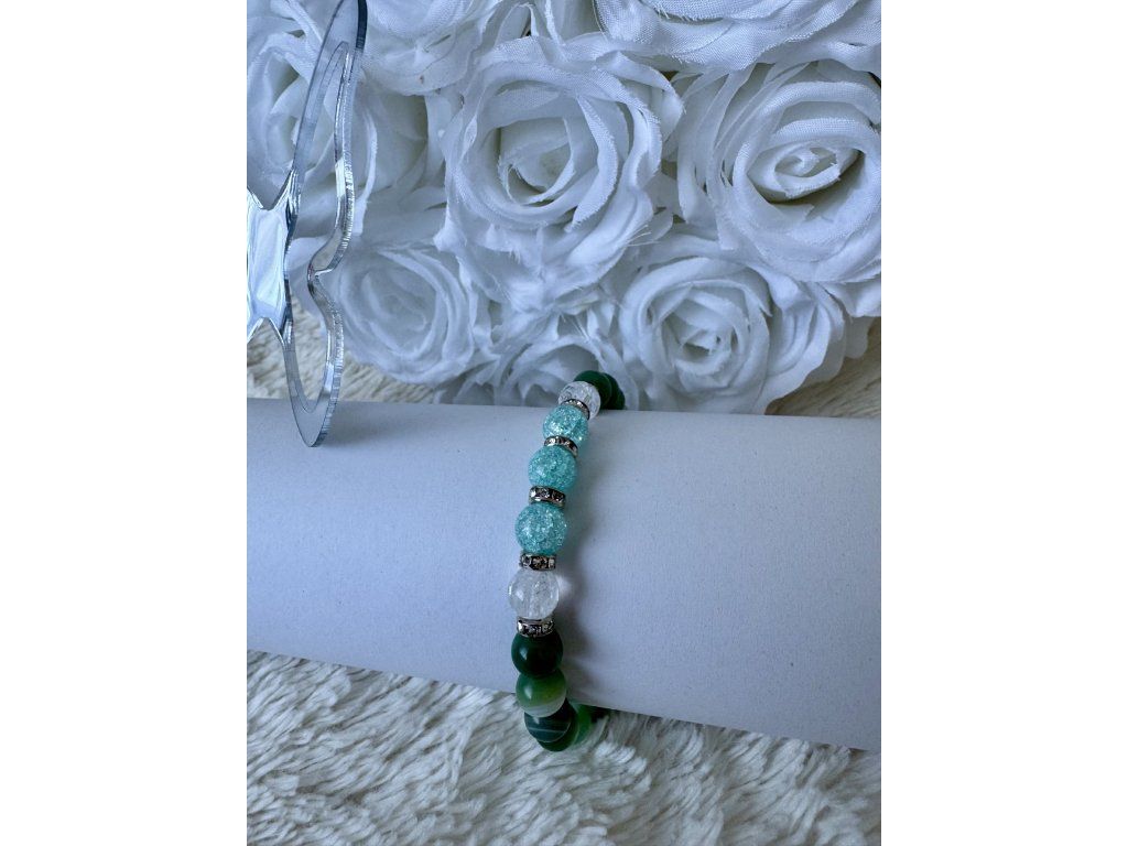 Energetický minerální náramek z achátu a bílého a zeleného praskaného křišťálu. Objevte harmonii klidu, obnovy a vnitřní síly s energetickým minerálním náramkem z achátu a bílého a zeleného praskaného křišťálu. Tato jedinečná kombinace kamenů propojuje uzemnění, očistu i svěží energii nových začátků. Achát je symbolem stability, ochrany a vnitřní rovnováhy. Pomáhá zklidnit mysl, posiluje pocit jistoty a dodává oporu v každodenních situacích. Bílý praskaný křišťál přináší čistotu, projasnění myšlenek a zesiluje energii, zatímco zelený praskaný křišťál symbolizuje růst, obnovu a harmonii s přírodou. Společně vytvářejí vyváženou energii, která podporuje klid, regeneraci i pozitivní naladění. Tento náramek je ideální pro každodenní nošení jako jemný, ale silný průvodce na cestě k větší vyrovnanosti, svěžesti a vnitřní pohodě.