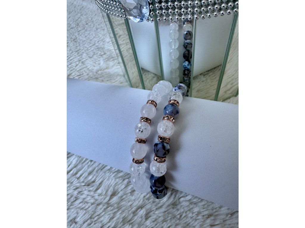 Objevte sílu vnitřního klidu a harmonie s minerálním náramkem Uvolnění, který byl navržen tak, aby vám pomohl zpomalit, nadechnout se a znovu se propojit s vlastní energií. Tento náramek spojuje tři výjimečné kameny – achát, praskaný křišťál a bílý nefrit – které dohromady vytvářejí harmonickou rovnováhu mezi uzemněním, duševní čistotou a jemnou ochranou.Achát je tradičně spojován se stabilitou a pocitem bezpečí, pomáhá zklidnit mysl a dodává vnitřní oporu. Praskaný křišťál symbolizuje očistu a nový začátek – rozjasňuje myšlenky a podporuje pozitivní energii. Bílý nefrit přináší harmonii, klid a vyrovnanost, jemně chrání a podporuje vnitřní rovnováhu.Náramek Uvolnění je ideální pro chvíle, kdy potřebujete zpomalit, nadechnout se a znovu najít rovnováhu ve svém každodenním životě. Je nejen elegantním doplňkem, ale i tichým průvodcem na cestě k většímu klidu a pohodě.