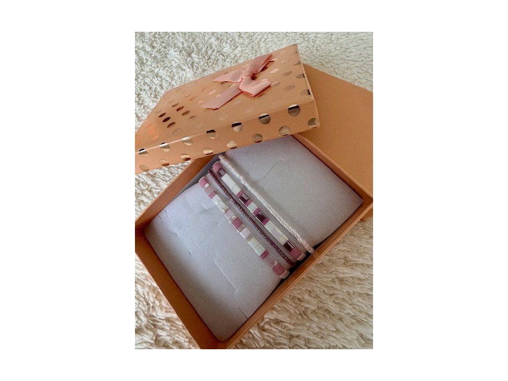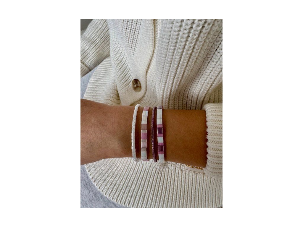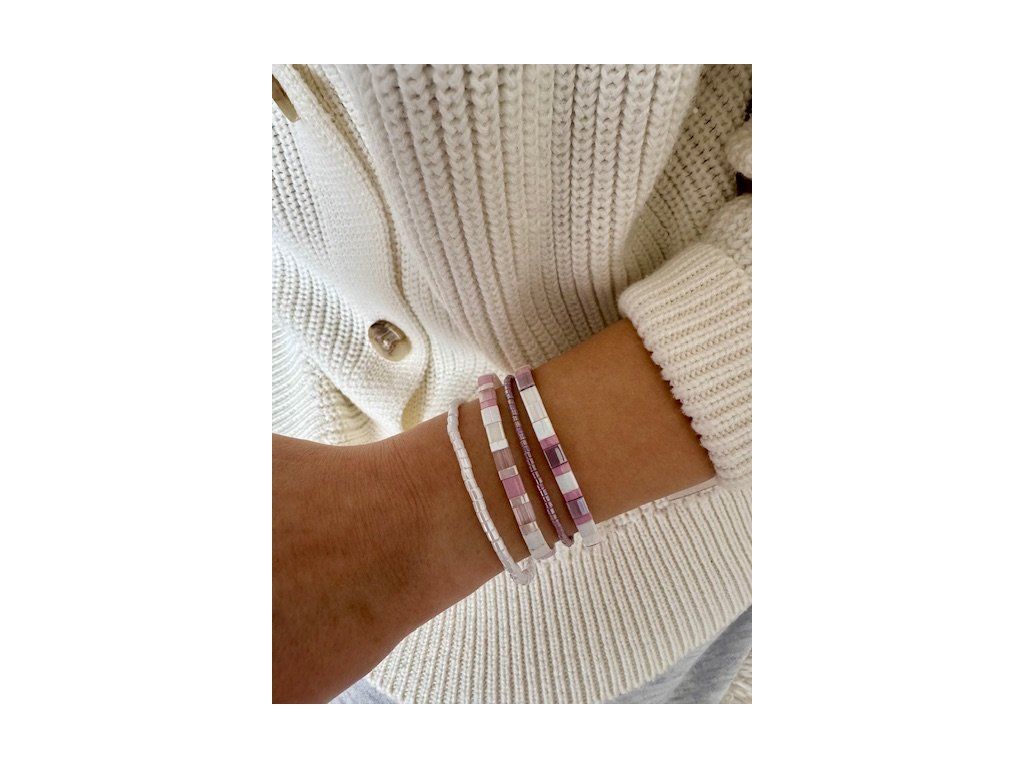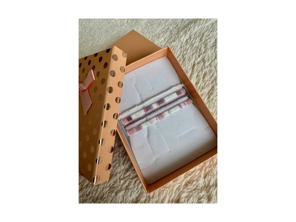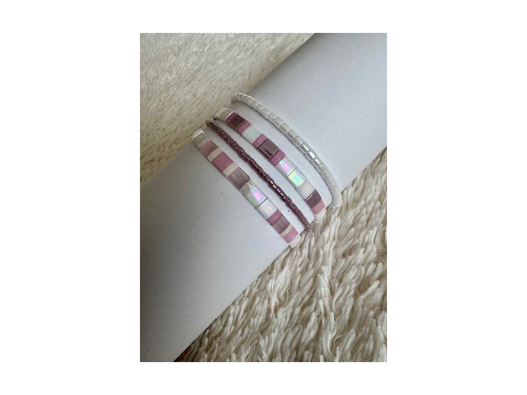 Dopřejte si luxusní set čtyř ručně vyráběných náramků, který jemně podtrhne ženskou eleganci a lehkost. Jemné odstíny růžové a bílé v harmonii se subtilními detaily z japonských korálků Miyuki vytvářejí čistý, svěží a nadčasový design, který na ruce nádherně vyniká při každém pohybu. Náramky jsou ideální pro vrstvení i samostatné nošení – snadno je sladíte s každodenním i slavnostním outfitem. Perfektní dárek v elegantním balení, který potěší každou milovnici jemných a moderních šperků.